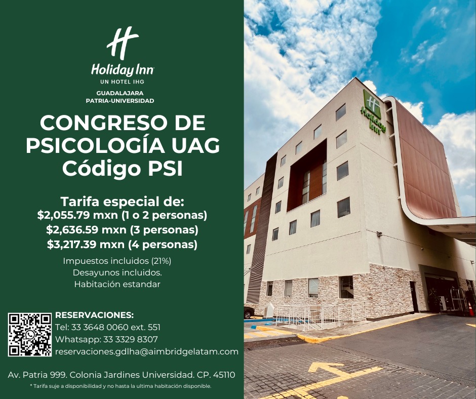Te compartimos con mucho gusto nuestro hotel sede Holiday Inn Guadalajara Patria-Universidad para que reserves con el Código PSI.